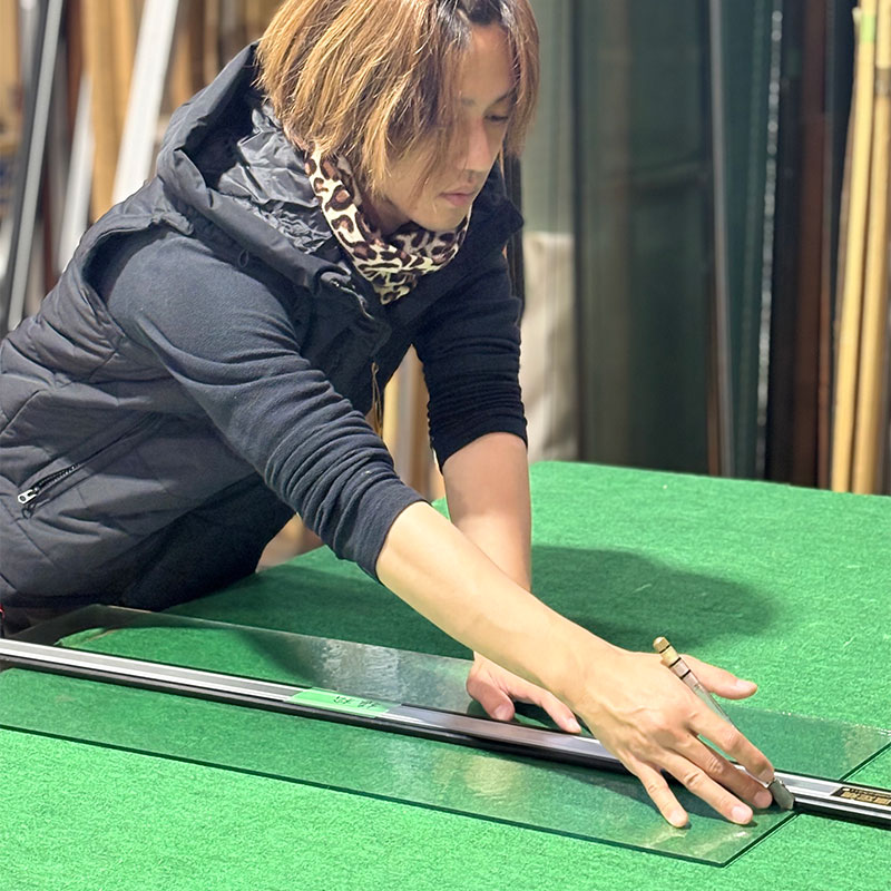 私は以前、接客や配達の仕事をしていましたが、違う分野である建築関係に興味を持ち、ガラスや建具のスキルや建築の仕組みを知ることで日常生活においても役に立つことが多いのでは、と考え入社を決めました。
